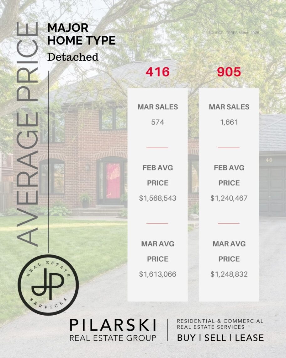 - Detached Homes: The average sale price was $1,342,375 (up 2% from February, but down 7% year-over-year). Sales strengthened to 2,235 transactions, while inventory rose to 9,320 active listings.