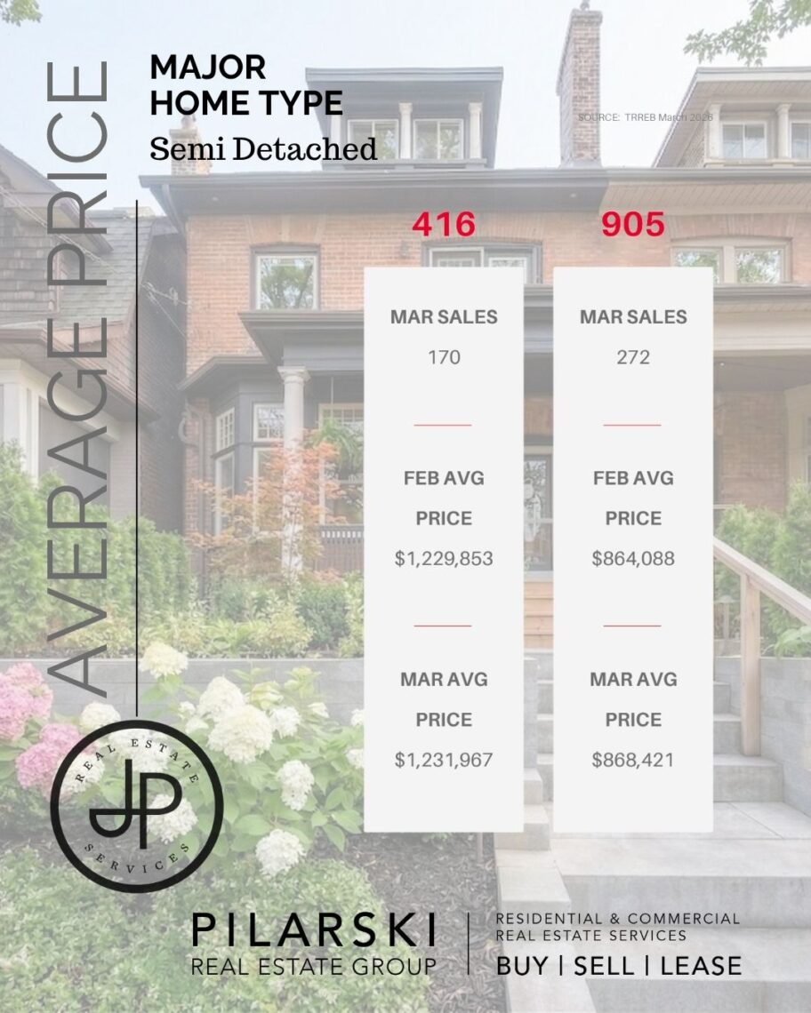- Semi-Detached Homes: The average sale price reported was $1,008,246. The segment saw 442 total sales and maintains an elevated inventory of 1,087 active listings.