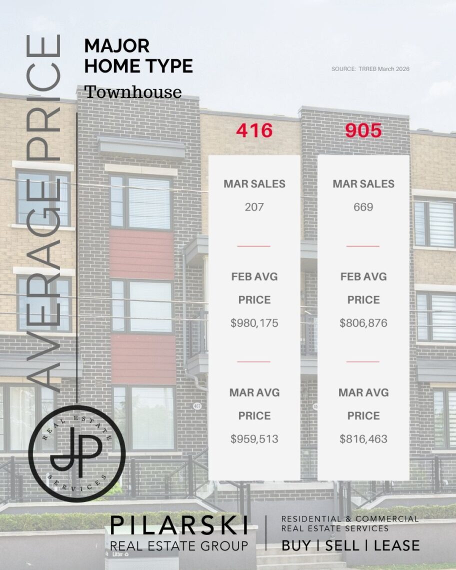 - Townhomes: Pricing remained relatively stable at an average of $931,740. Sales activity matched March 2025 levels with 505 transactions, while active listings increased to 1,543.