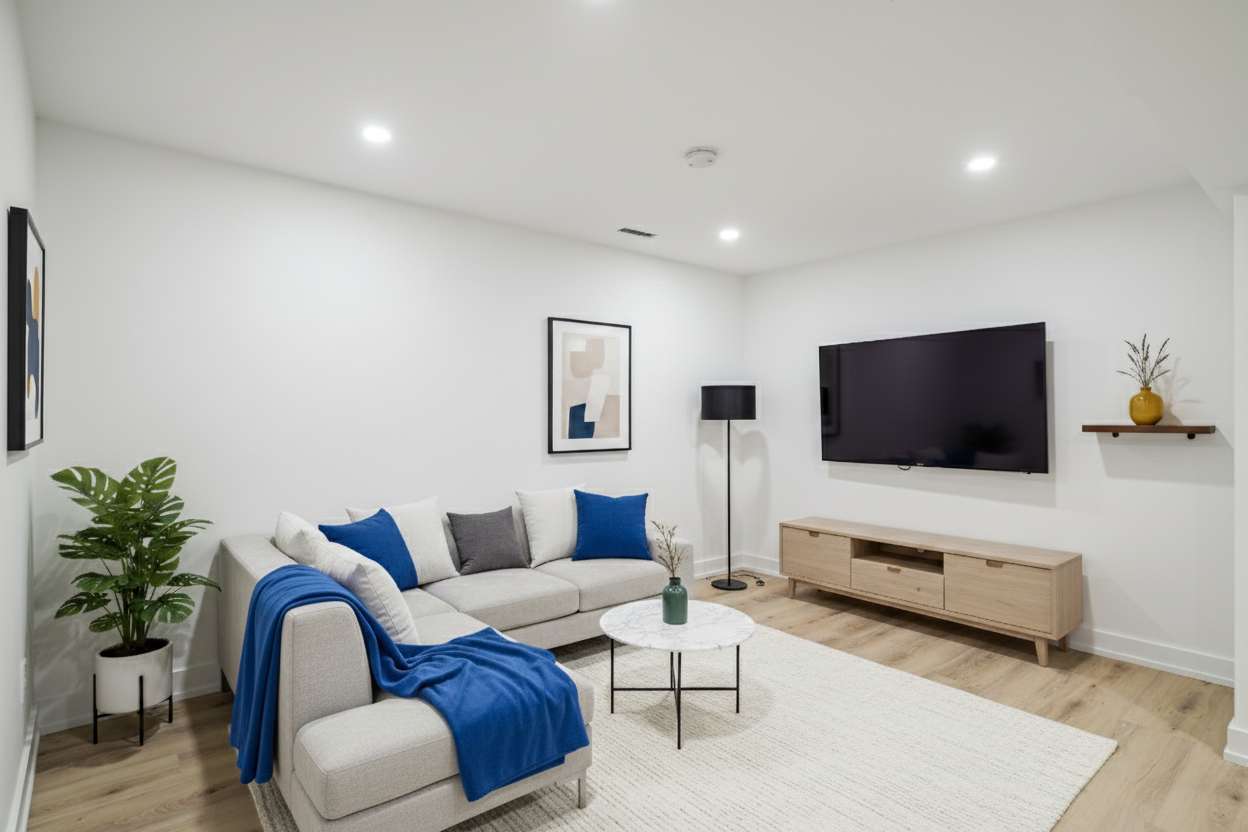 The versatile lower level features a full kitchen, bedroom, bathroom with a jacuzzi, and a media room wired for surround sound — perfect for guests, a live-in nanny, private in-law suite, or potential rental suite.