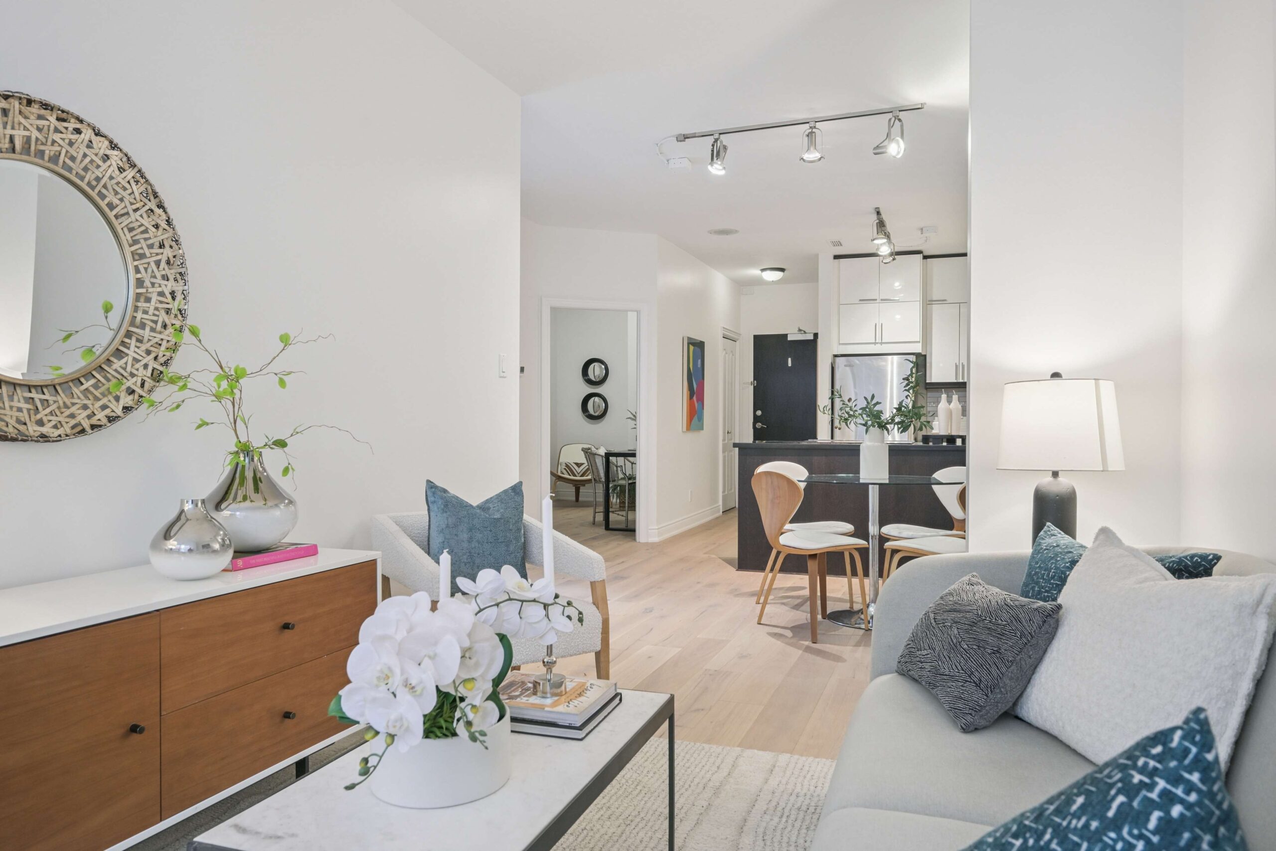 Located within a well-established 12-storey boutique mid-rise, The 393 on King seamlessly blends style, security, and comfort. Known for its rouge-tinted windows and inviting brick podium, the building offers thoughtful amenities including a fitness centre, weight room, billiards lounge, and a rooftop deck perfect for unwinding after a busy day.