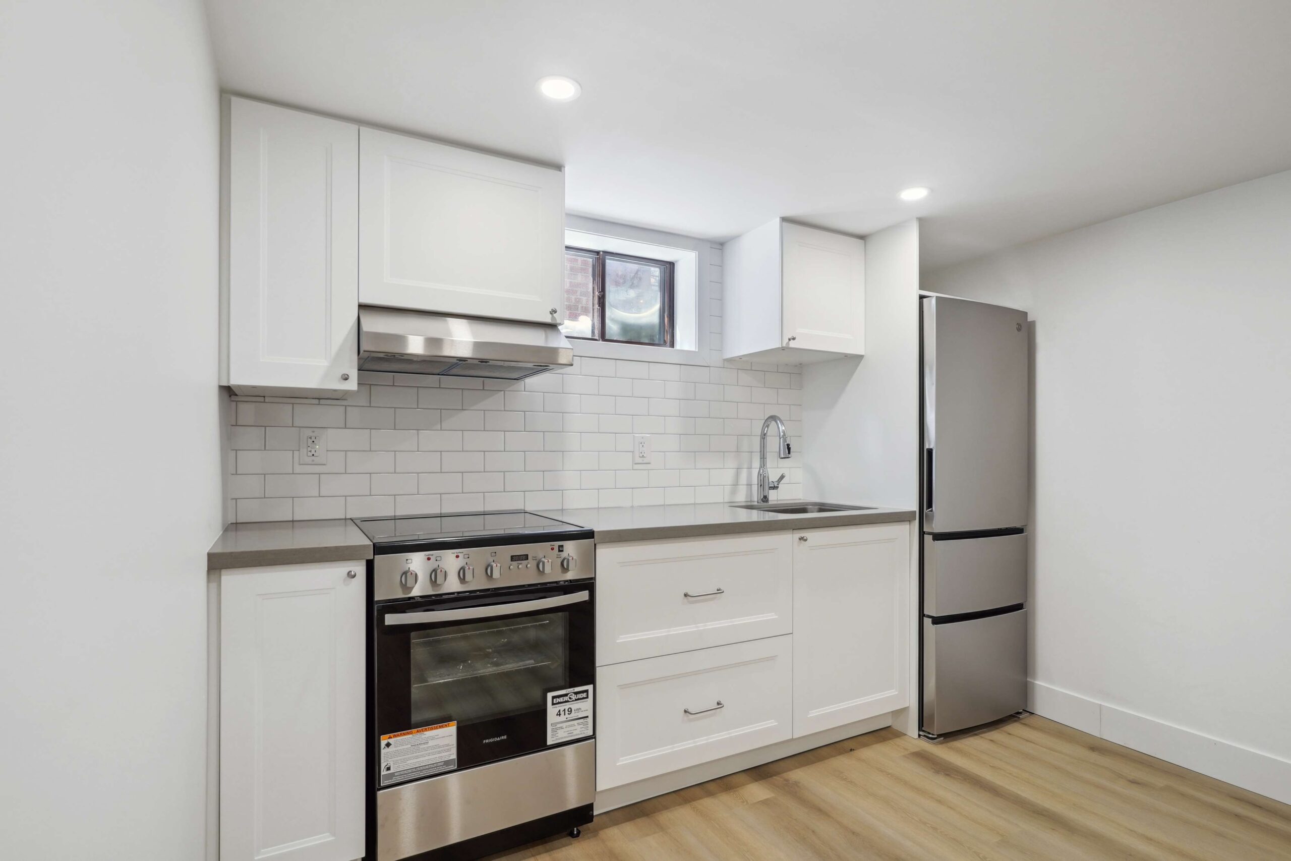 Step inside to sleek engineered flooring that flows throughout the space, leading to a stylish kitchen and living area, which are the perfect retreat. The thoughtfully designed kitchen boasts high-end finishes, while the spa-inspired bathroom offers a touch of luxury. With the convenience of in-suite laundry and inclusive utilities, this suite is designed for effortless, low-maintenance living.
