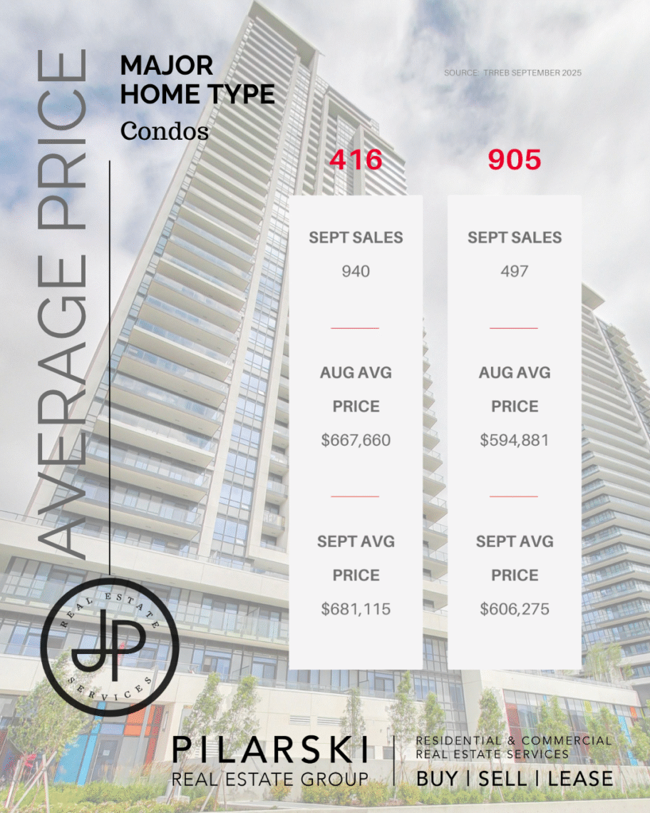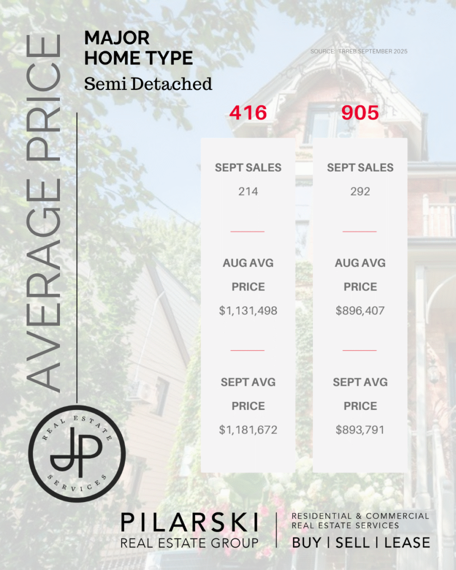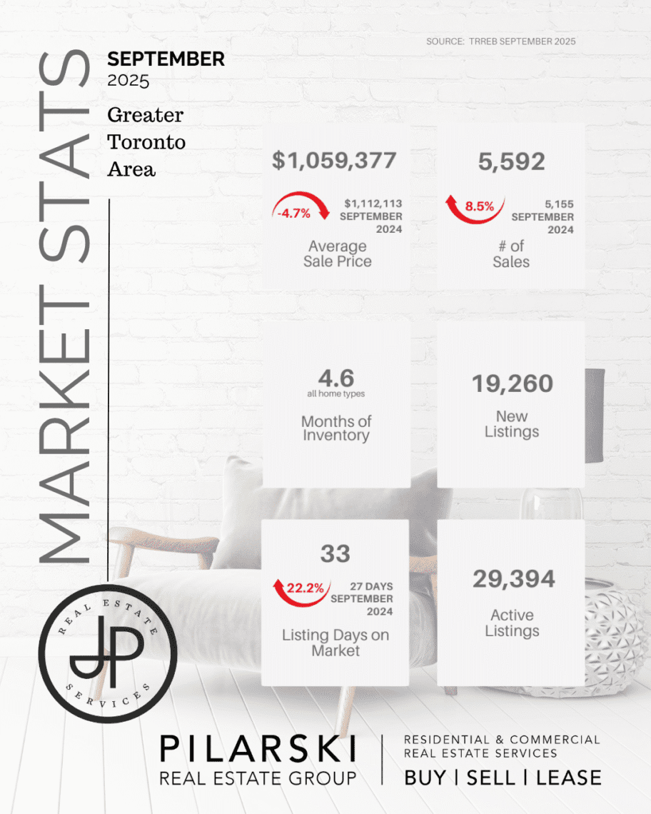 The Greater Toronto Area housing market showed renewed strength in September, with sales activity rising 8.5% compared to last year and 7.3% compared to August. The average selling price reached $1,059,377, supported by elevated inventory levels that continue to give buyers more negotiating power.